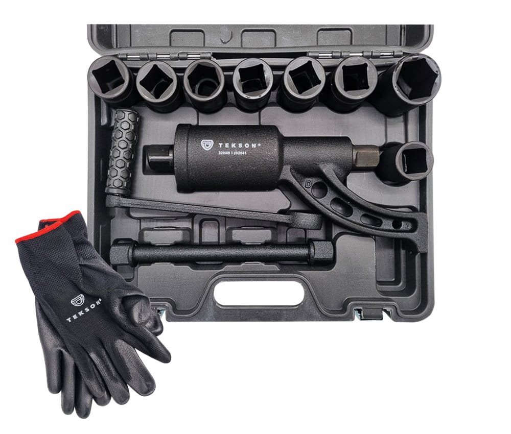 ✅Dostarczany w czarnej walizce TEKSON, która zawiera klucz dynamometryczny, nasadki 21,24,27,30,32,33,38mm oraz rękawice ochronne
