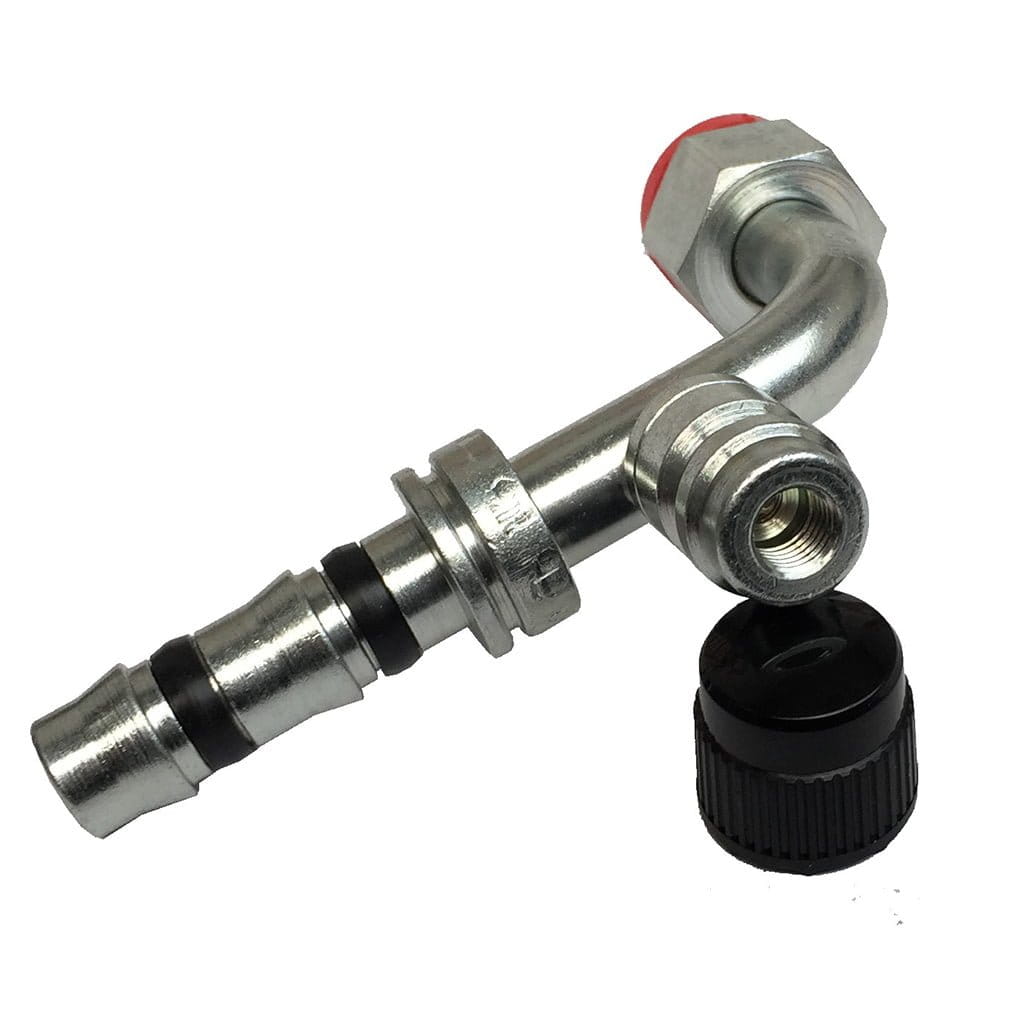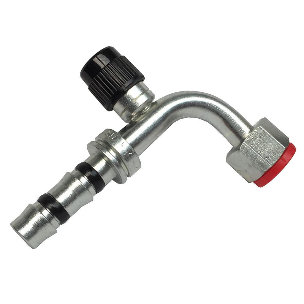 Złączka Końcówka do węża Klimatyzacji ( Frigoclic ) - z oringiem żeńska 90 Kolanko - Zawór Wysokiego Ciśnienia - UNF