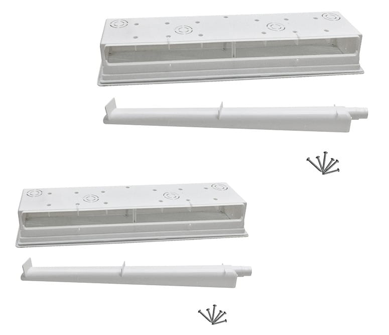 Skrzynka instalacyjna do osadzania w ścianie. Klimatyzator umieszczany jest bezpośrednio na skrzynce, dzięki czemu nie trzeba wiercić dodatkowych otworów w ścianie podczas instalacji. Możliwa jest regulacja kierunku odpływu skroplin.