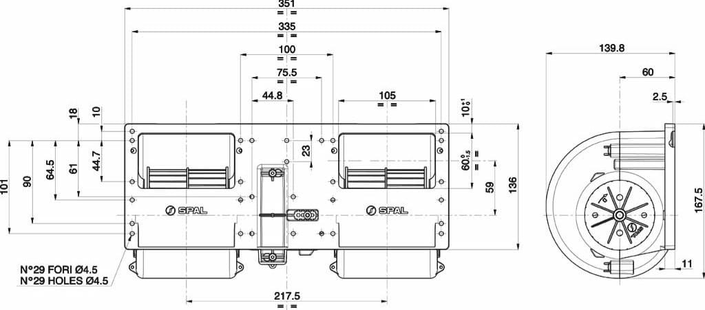 DMUCHAWA PODWÓJNA WENTYLATOR SPAL 006-B40-22 24V 3-SPEED