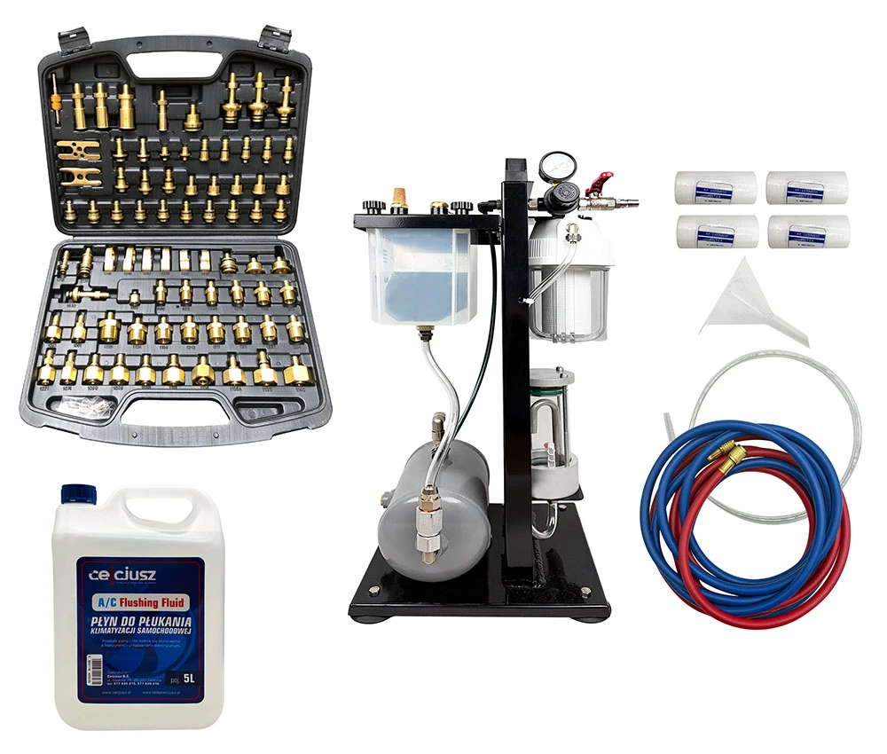 Maszyna do płukania układu klimatyzacji A/C Urządzenie + adaptery + płyn 5L