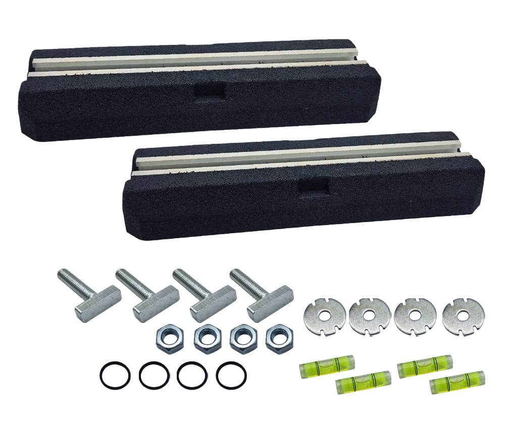 W zestawie znajdują się 2 szt. podstaw, komplet śrub mocujących i 4 poziomnice. Warunki pracy: od -40°C do 80°C.