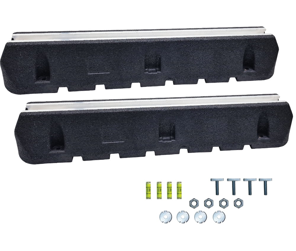 Materiał wykonania to wulkanizowana mieszanka SBR, odporna na promieniowanie UV, zapewniająca tłumienie wibracji. Podstawy posiadają otwory montażowe z możliwością montażu do podłoża, a także otwory pozwalające na odprowadzanie wody z pod spodu podstaw. Ekstrudowana aluminiowa listwa zatopiona w gumowej mieszance gwarantuje prosty montaż i demontaż.
