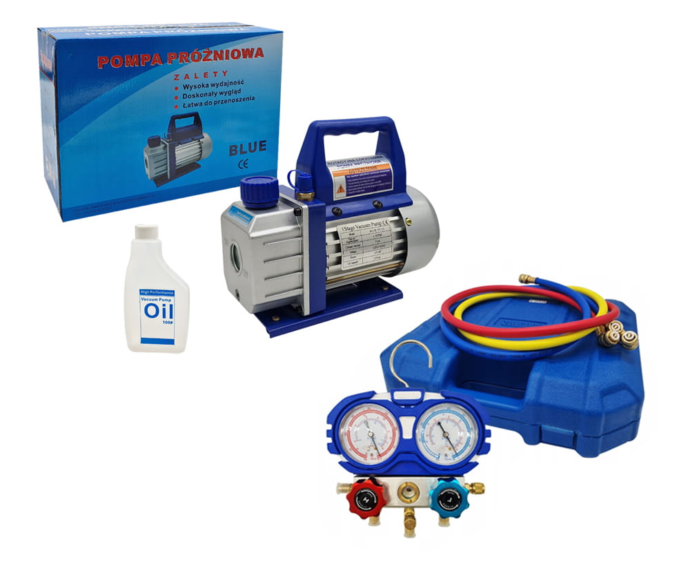 Pompa Próżniowa VP115 z olejem + Manometry z wężami do klimatyzacji