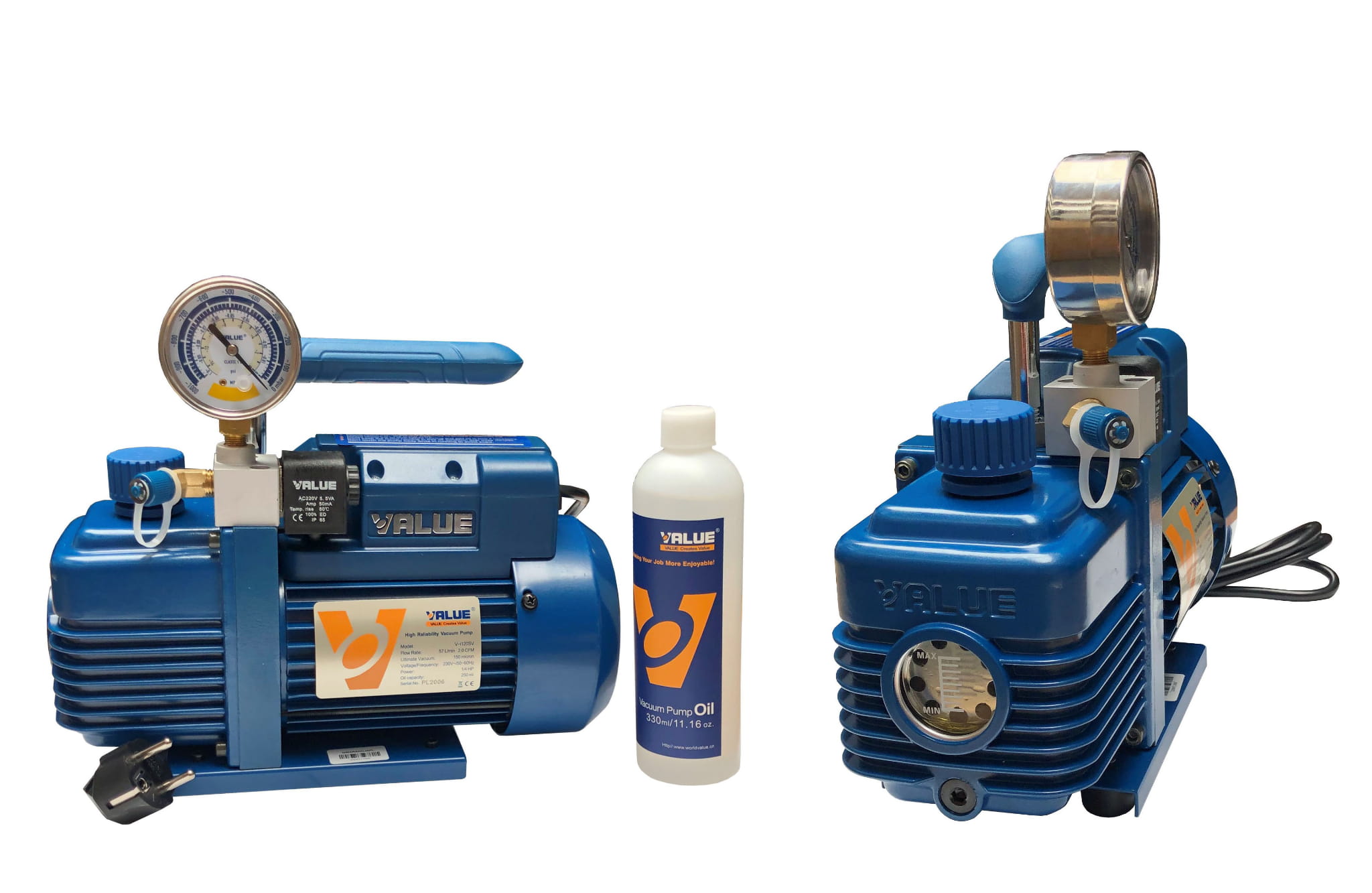 Pompa próżniowa do klimatyzacji i autoklimatyzacji VALUE V-i120SV z elektrozaworem i wakuometrem.