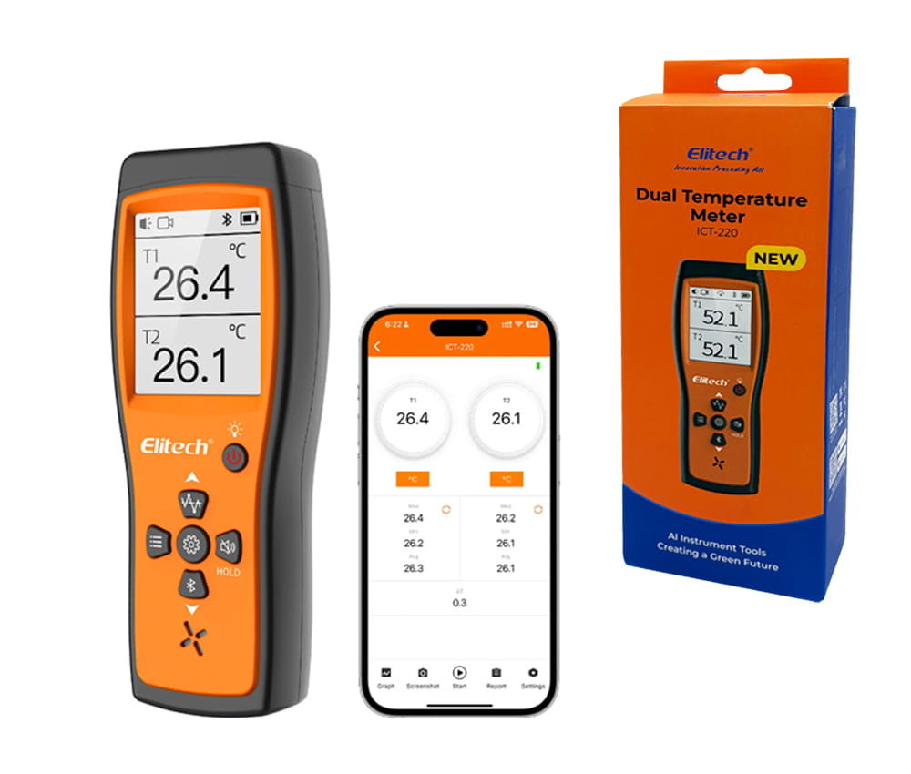 Termometr Dwukanałowy Elitech ICT-220 Typ K Bluetooth Rejestracja Chłodnictwo Pompa Ciepła