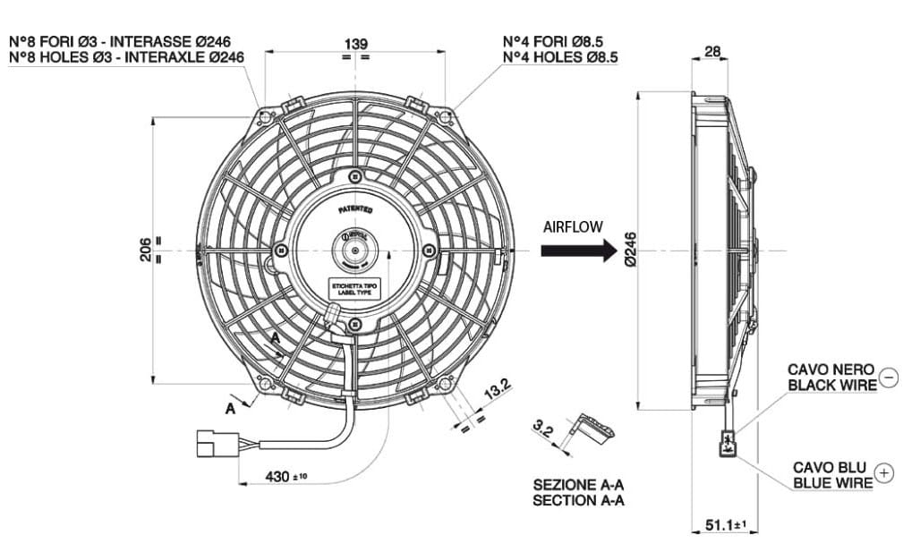 - Średnica zewnętrzna: Ø 246 mm
