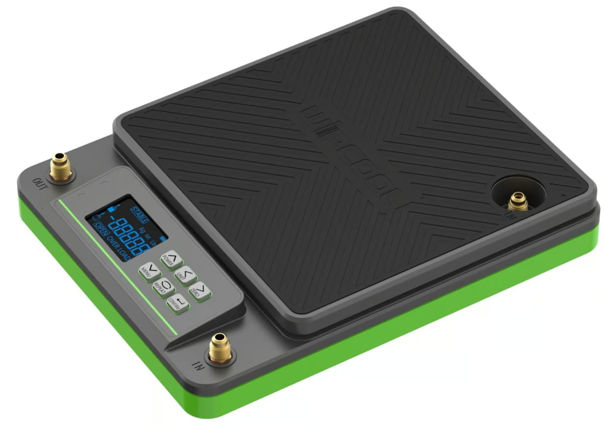 Waga programowalna do czynników R290/R600a z precyzją 1 g, kompaktową konstrukcją i portem ładowania pionowym/odwróconym. Idealna do serwisu chłodniczego.