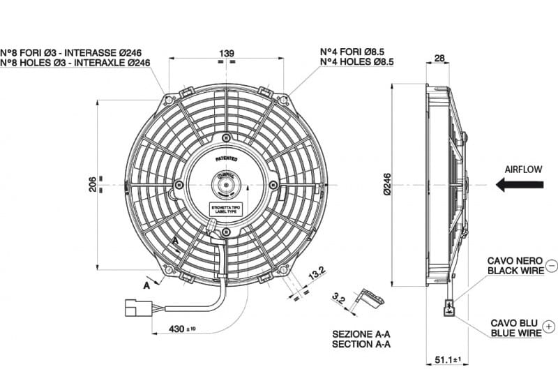 - ŚREDNICA Z OBUDOWĄ: 247 mm