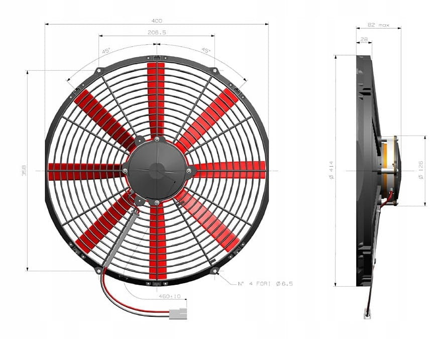 - Maksymalny wydatek powietrza: 3551m3/h przy ciśnieniu statycznym 0 mm H2O i napięciu zasilania 26V,
