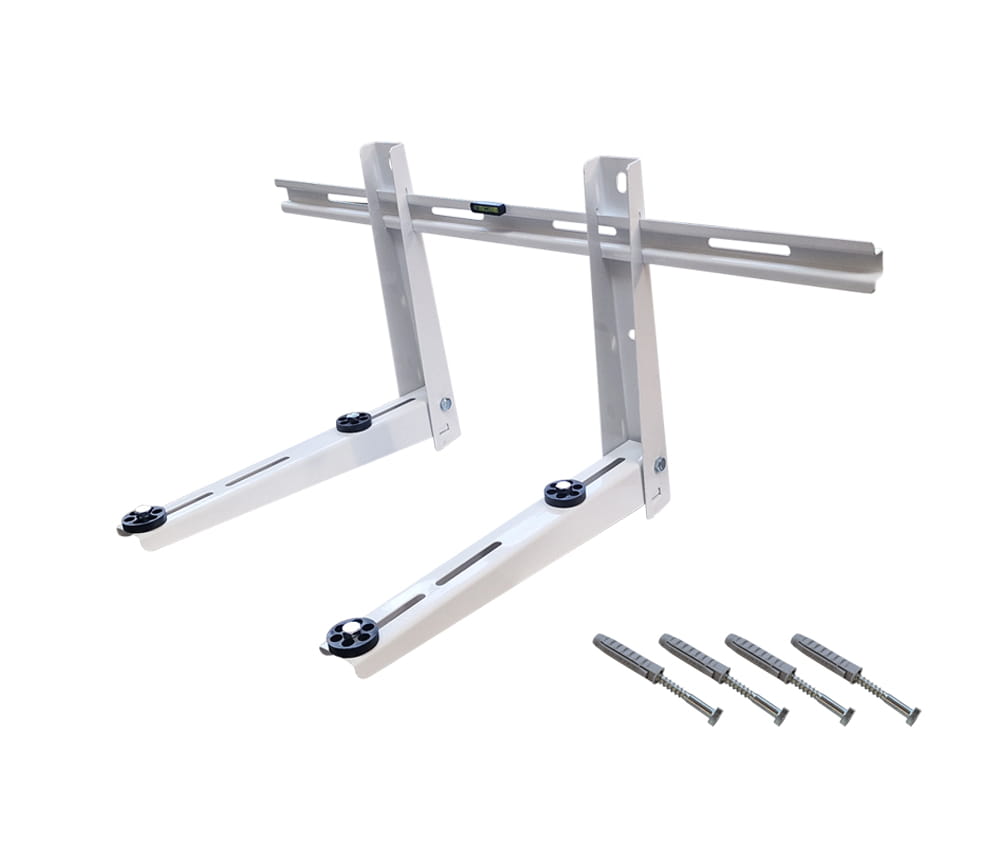 BLUE GFK420 to solidny składany wspornik z poprzeczną belką montażową. Pozwala na szybki i prosty montaż jednostek zewnętrznych na ścianach. Konstrukcja pozwala na regulację odległości ramion po zamontowaniu belki poprzecznej. Malowany proszkowo, odporny na korozję i odbarwienia. W zestawie śruby montażowe, gumowe podkładki antywibracyjne, śruby pozwalające na regulację kąta od ściany, belka pozioma z poziomnicą oraz dwa składane ramiona.