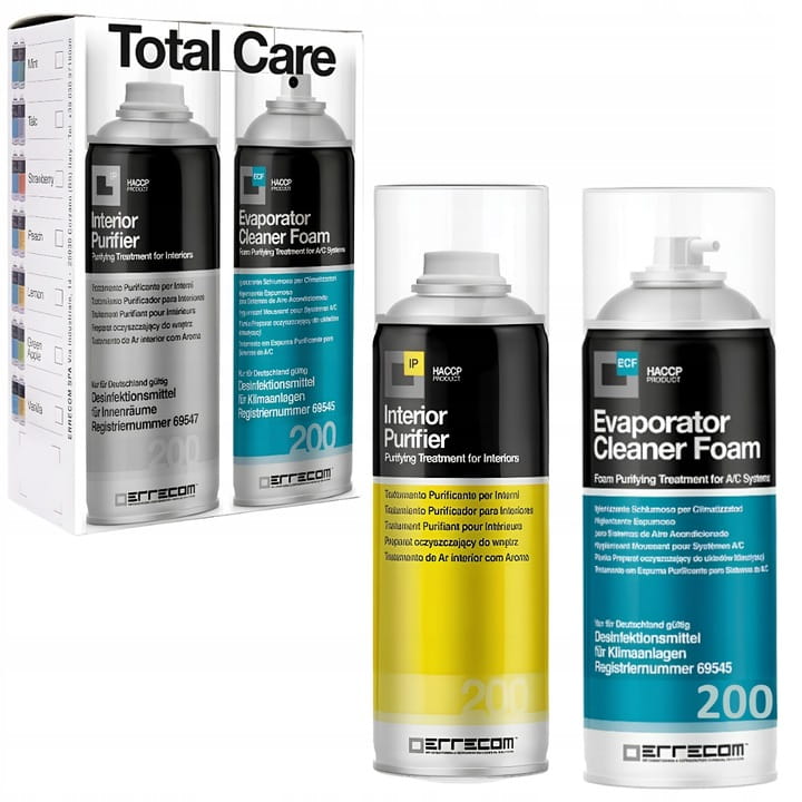 Zestaw Total Care o zapachu LEMON odświeżający układy klimatyzacji w pojazdach składający się z dwóch produktów: