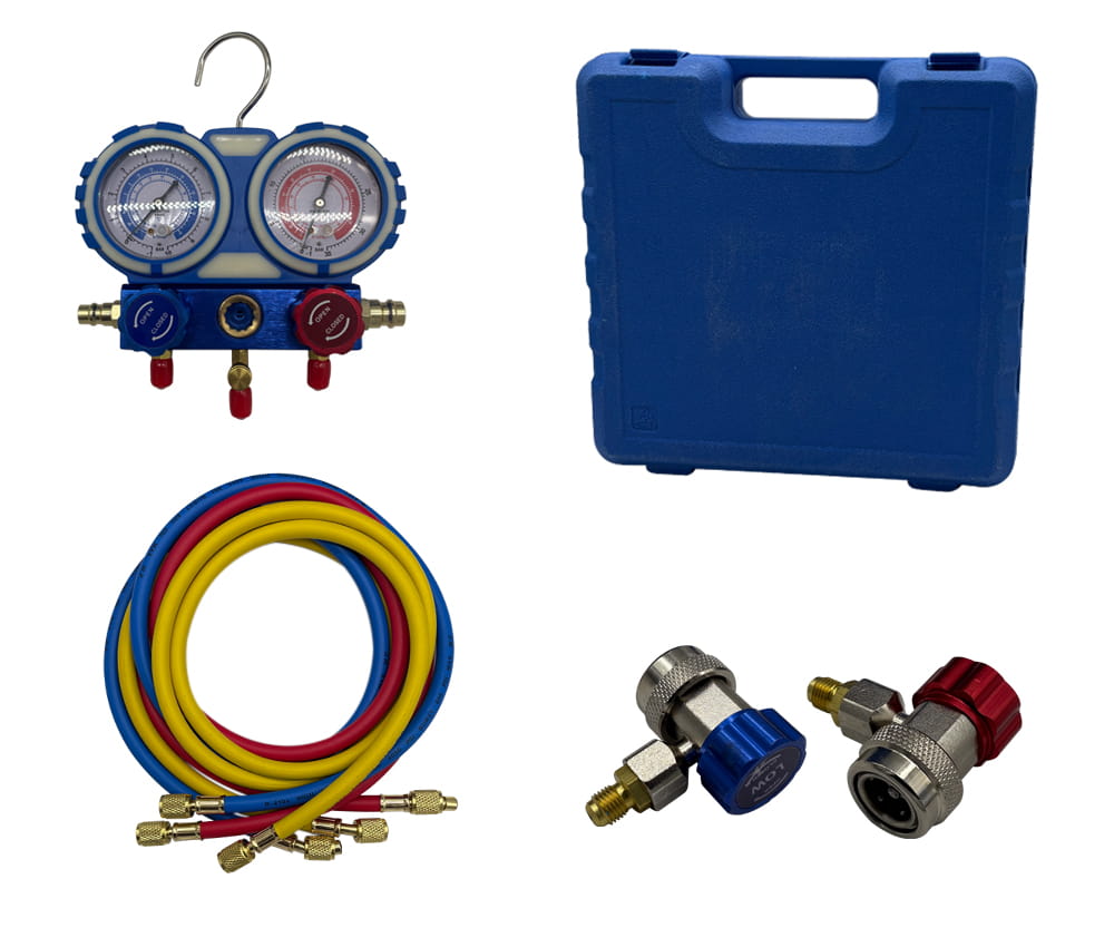 - Manometry klimatyzacji samochodowej do czynnika R1234yf, R134a + szybkozłączki R-134a