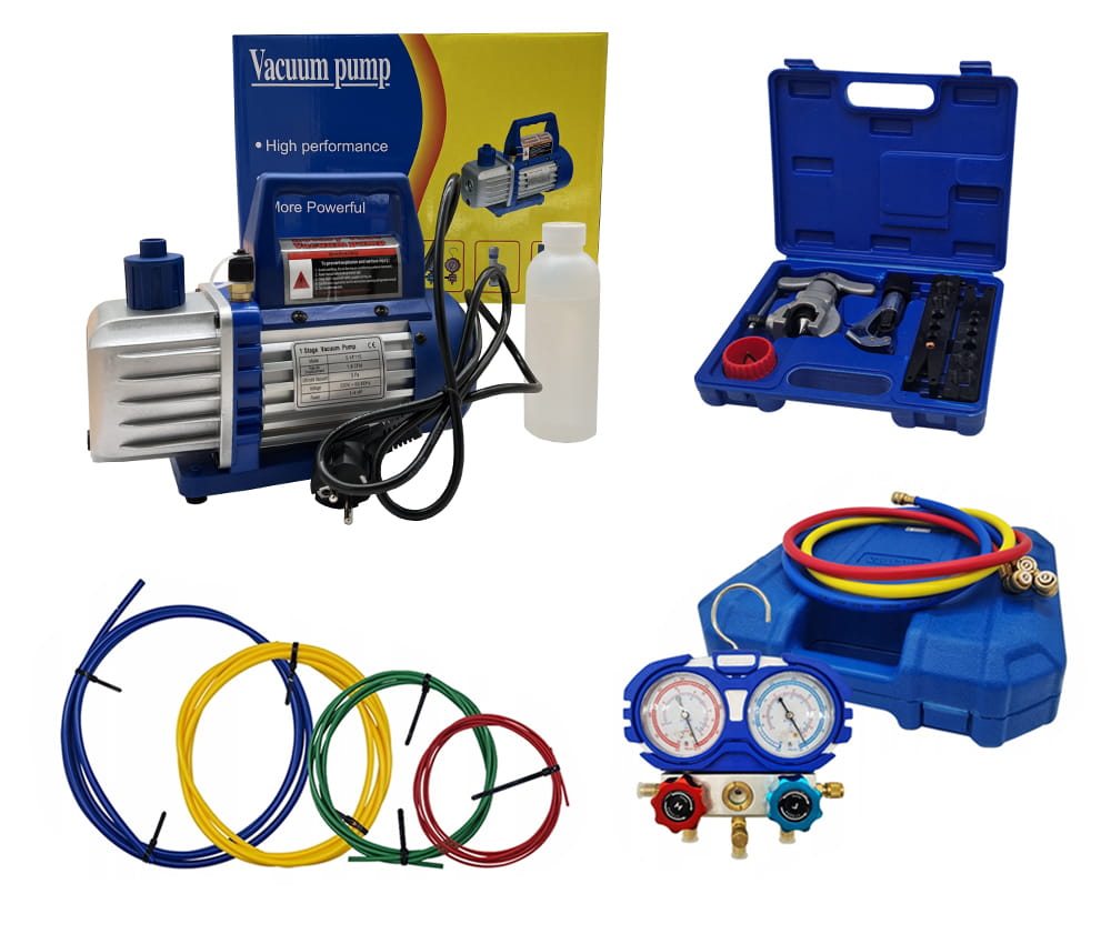 Zestaw do klimatyzacji Pompa próżniowa SPV115 + Manometry Aitcool + przewody Kielicharka Gratownik Nóż + Pręty