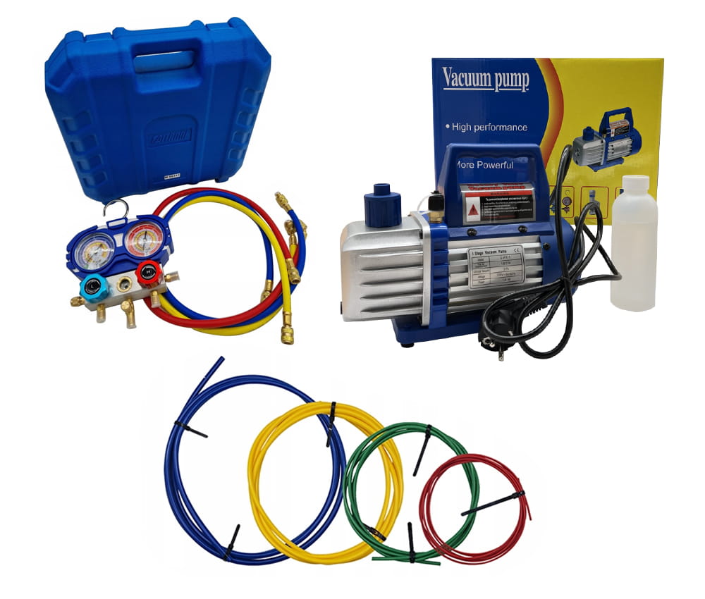 Zestaw do montażu klimatyzacji Pompa próżniowa SPV115 + Manometry z wężami R32, R410A + Zestaw prętów