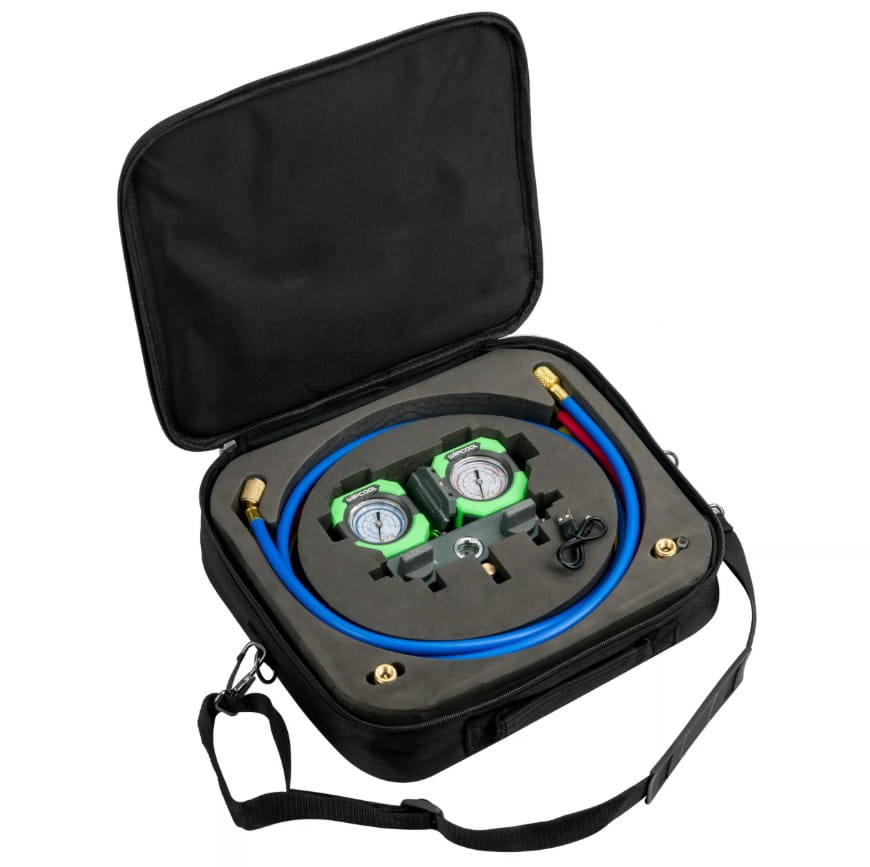 Zestaw manometrów jest idealnym wyborem dla osób poszukujących niezawodnego, precyzyjnego i łatwego w użyciu narzędzia do pracy z systemami klimatyzacyjnymi i chłodniczymi.