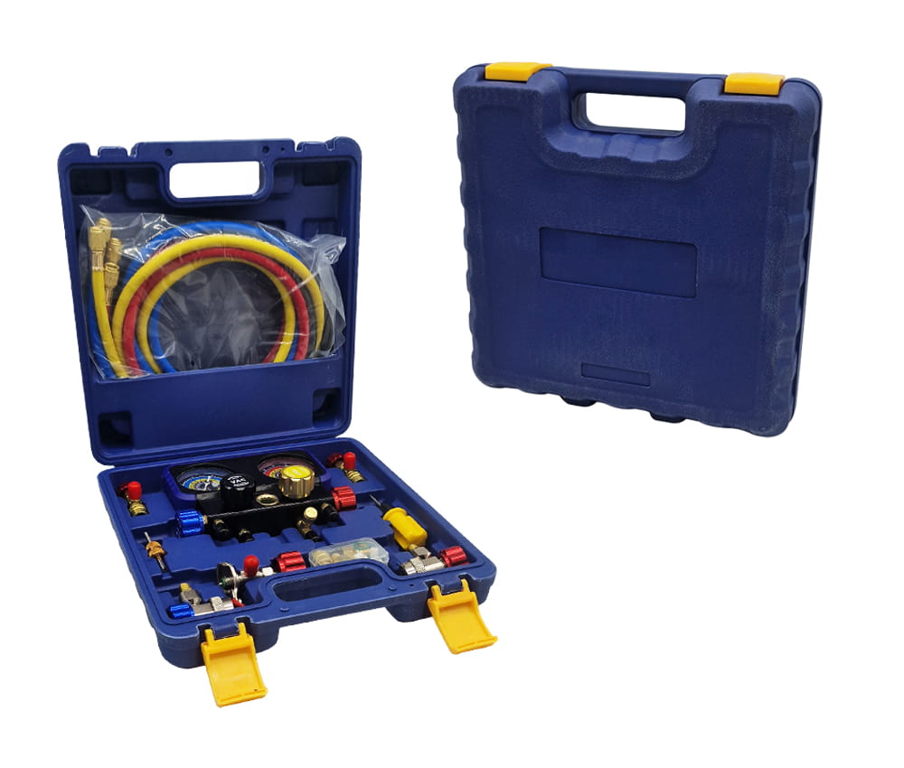 Zestaw manometrów z wężami do czynników R22 R32 R134A R410A z walizką