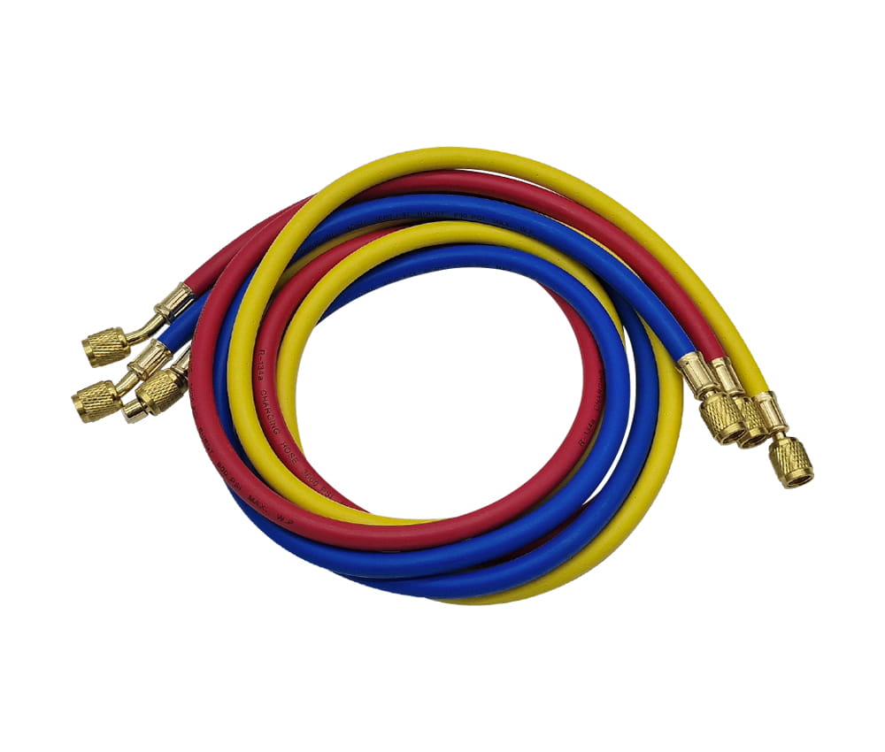 Zaawansowany zestaw węży serwisowych zaprojektowany do pracy z nowoczesnymi czynnikami chłodniczymi wymagającymi wyższego ciśnienia, takimi jak R410A czy R32. W zestawie znajdują się trzy węże w kolorach czerwonym, niebieskim i żółtym. Różne rozmiary przyłączy umożliwiają szerokie zastosowanie, a solidna konstrukcja zapewnia trwałość i niezawodność.