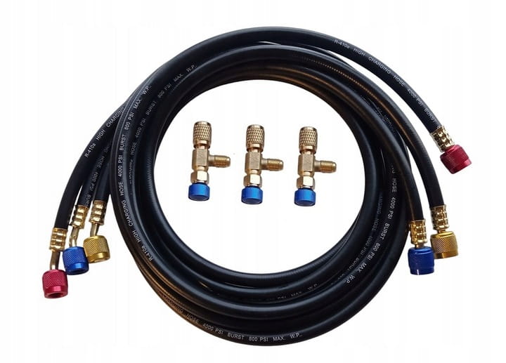 Zestaw węże przewody serwisowe z zaworami 3 sztuki 180cm 200bar