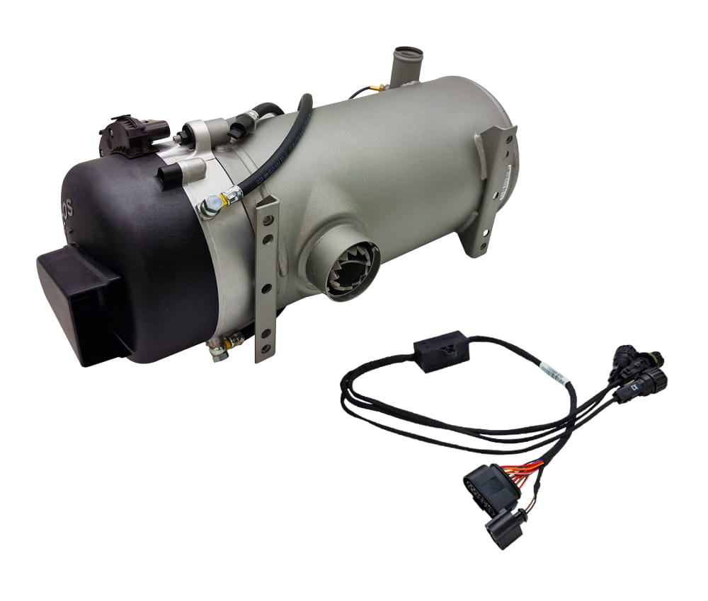 Podgrzewacz wody Webasto Valeo Thermo Plus 350 35 kW 24 V zawiera filtr paliwa, deflektor wydechu i wyłącznik.