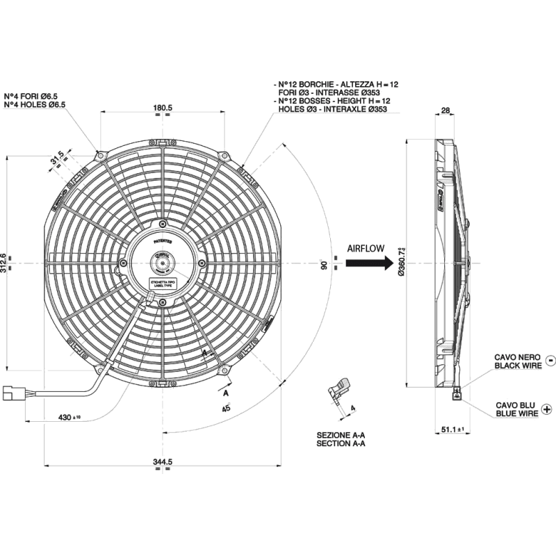 - Średnica zewnętrzna: Ø 360,7 mm